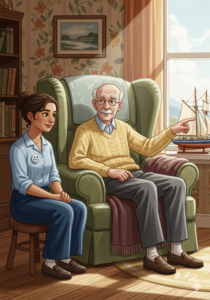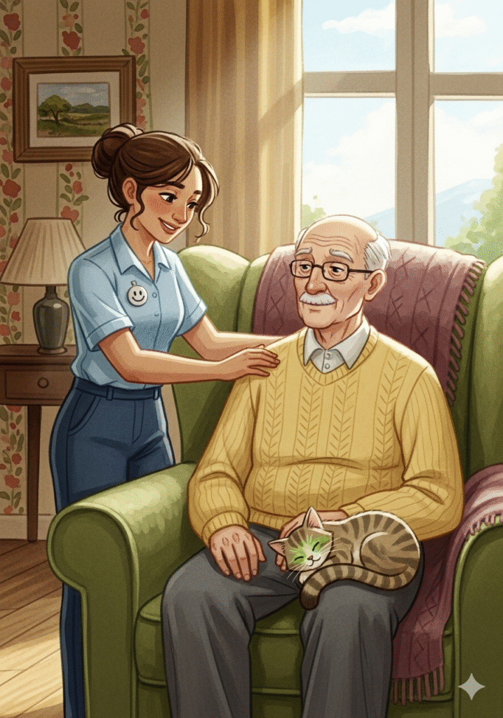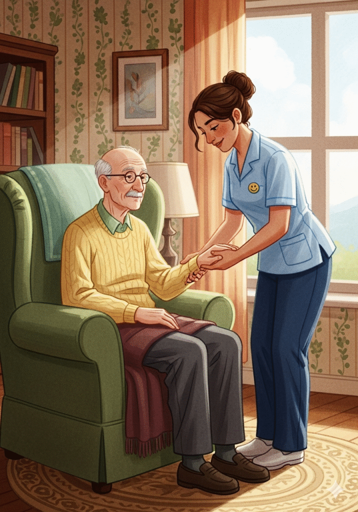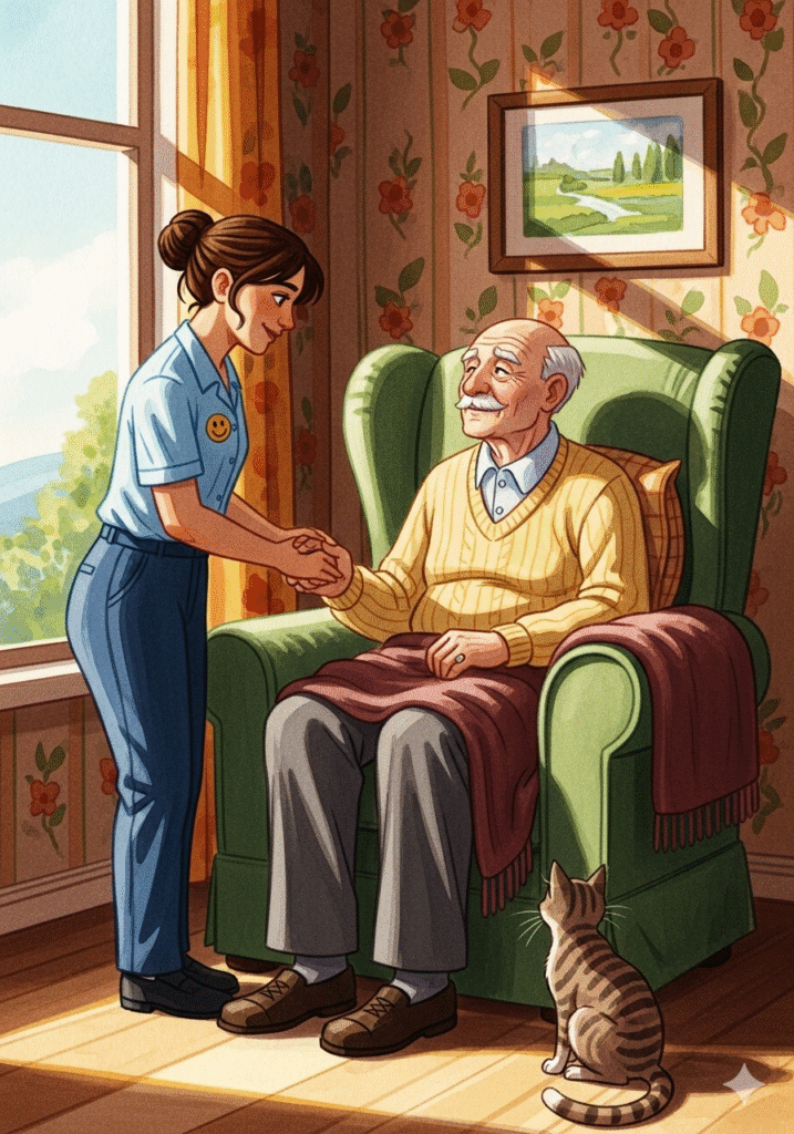 Livre illustrée Le Murmure de la Gentillesse – Inès la jeune aide-soignantePar Ivan RADKOVInès se réveillait avec le soleil, mais son cœur était déjà là, dans les maisons qui l’attendaient. Elle n’apportait pas seulement un uniforme d’aide-soignante ; elle apportait une étincelle de chaleur humaine.Sa première visite était chez Maurice. Maurice n’était pas seulement un patient ; il était un poète des jours passés, qui regardait le monde à travers la grande fenêtre de son salon.« Bonjour, monsieur Maurice, » disait Inès, sa voix aussi douce que le beurre fondu. Le petit chat de Maurice, Chaussette, la saluait d’un coup de tête amical sur la jambe.Aujourd’hui, c’était le jour du bain. Un moment qui, pour Maurice, était parfois difficile. Il fallait de la patience, de la confiance et une main sûre pour se déplacer en toute sécurité.Inès prenait son temps, s’assurant que l’eau était à la température parfaite et que le savon sentait bon le thym et la lavande. Elle ne précipitait jamais les choses importantes.Après les soins, venait le moment de la médication. « Un peu de magie pour que le moteur tourne bien, » plaisantait Maurice. Inès préparait les petites pilules avec une précision d’orfèvre.Mais le soin le plus important d’Inès n’était pas dans la toilette ou les pilules. C’était dans l’écoute. « Racontez-moi l’histoire de ce bateau, monsieur Maurice, » demandait-elle.Maurice racontait l’histoire de son modèle de bateau – un voyage en mer, un amour d’été, une vieille chanson oubliée. Et en écoutant, Inès voyait au-delà de la fragilité.L’aide-soignante est celle qui voit la personne entière, l’histoire derrière le corps fatigué. Elle nourrit le corps, mais elle nourrit aussi l’âme.Quand Inès fermait la porte de Maurice, elle n’emportait pas la fatigue du travail. Elle emportait la chaleur d’une histoire partagée, le murmure de la gentillesse qui rend chaque jour meilleur.Auteur: Ivan RADKOVRevoir ou Ecouter le livre « Le Murmure de la Gentillesse » cliquez ici Share on FacebookPost on XFollow usSave Navigation de l’articleLe Murmure de la Gentillesse Le Partenariat Essentiel – Le Rôle de l’Aide-Soignant(e)